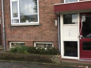 Met de tweede stop bij het wooncomplex Karel Doormanlaan met negentig woningen in Katwijk werden we gastvrij opgewacht door Wilma Guijt en Dirk Schaap, respectievelijk lid en contactpersoon van de bewonerscommissie van de SHD. Zij vertegenwoordigen als commissie ook nog eens de bewoners van de dertig huurwoningen in de Piet Heinlaan. We werden eerst meegenomen naar de woning van Schaap op nr. 9B van de Karel Doormanlaan. Bij de klim naar boven in het trappenhuis maakte Guijt ons direct attent op de kwaliteit van de voordeuren, of beter gezegd het gebrek aan kwaliteit. ,,Daar kan een potentiële inbreker niet eens een briefje tussen deur en deurpost knellen om te checken of de bewoners thuis zijn want elk briefje valt zo naar beneden”, werd er schamper opgemerkt. Absoluut geen visitekaartje zo’n voordeur, ook al dateert deze flat uit de typische jaren vijftig bouw.